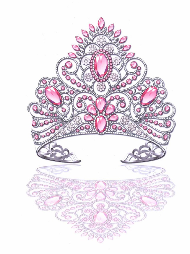 This delicate tiara was made of 24 grams of 18kt white gold, 105 grams of pure silver, gorgeous pink topaz (70.00cts) and flawless white sapphires (55.00cts). Some of the world's finest craftsmen and women worked together to make this crown as perfect as can be. Here is a draft of my original design, so you guys can see all the beautiful details.